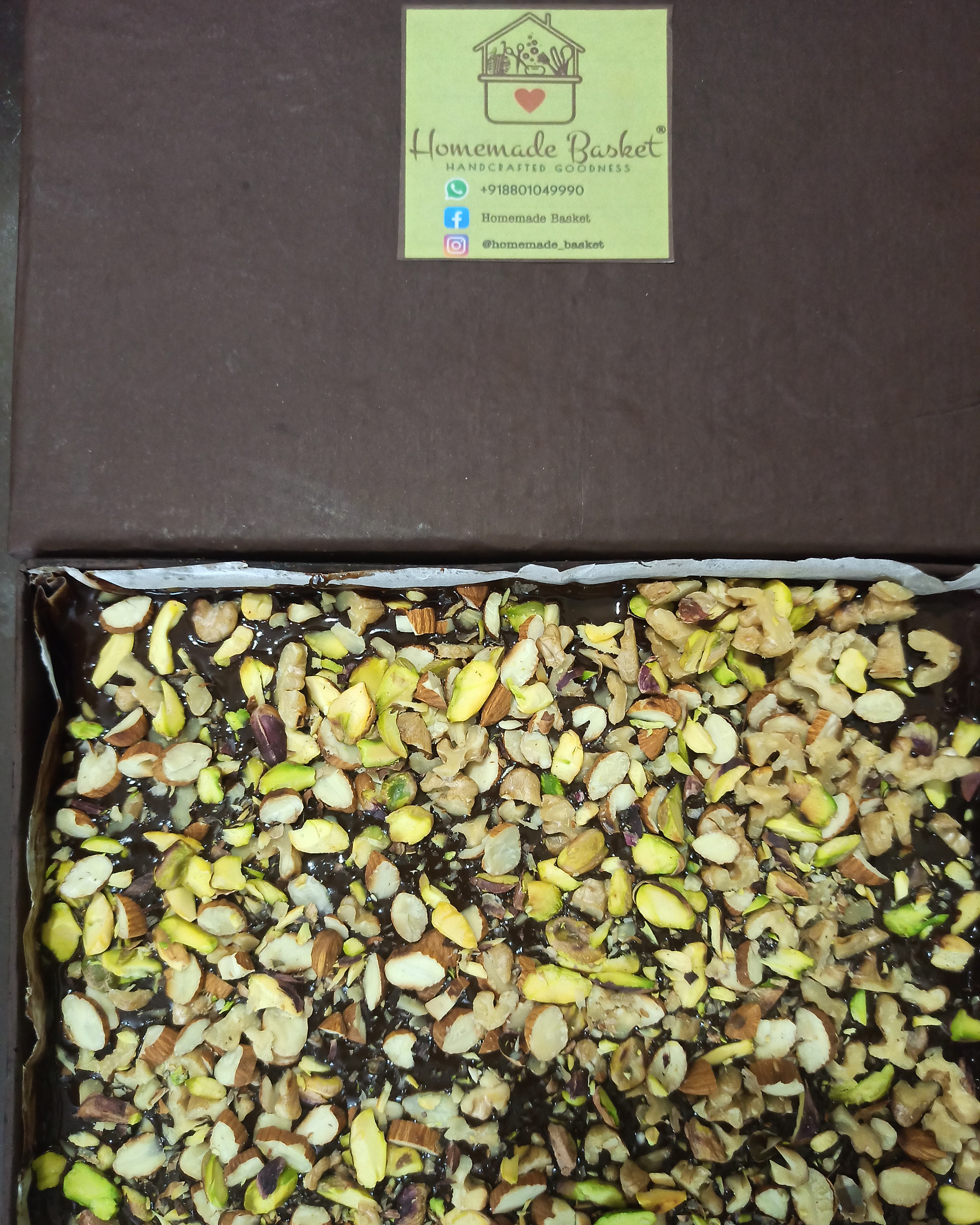 Half kg 55% WWB + 55% chocolate coverture ganache + dry fruits (roasted almonds,walnuts,pistas)