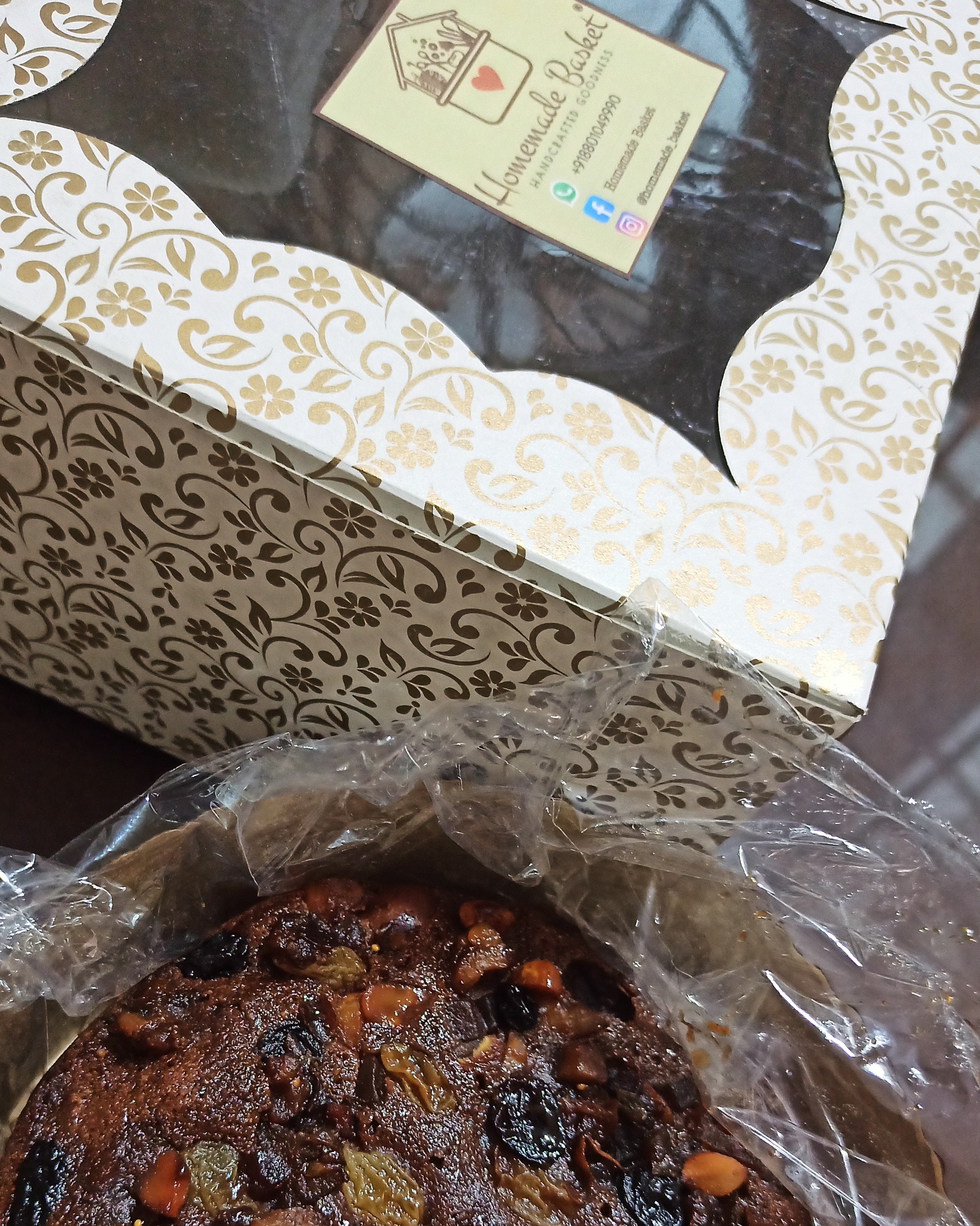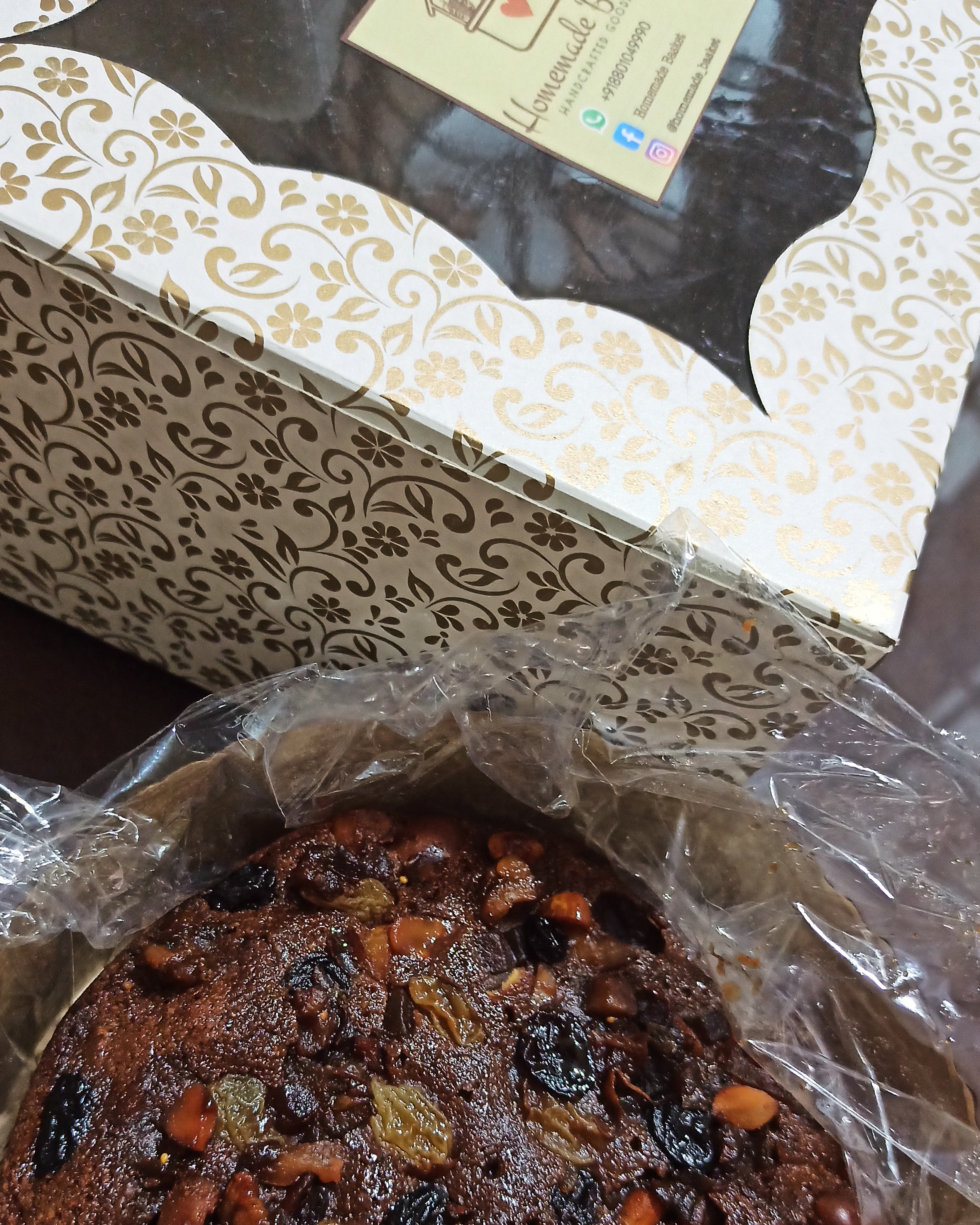 Half kg wholewheat cake with dryfruits presoaked in Old Monk Rum. Preorder basis only