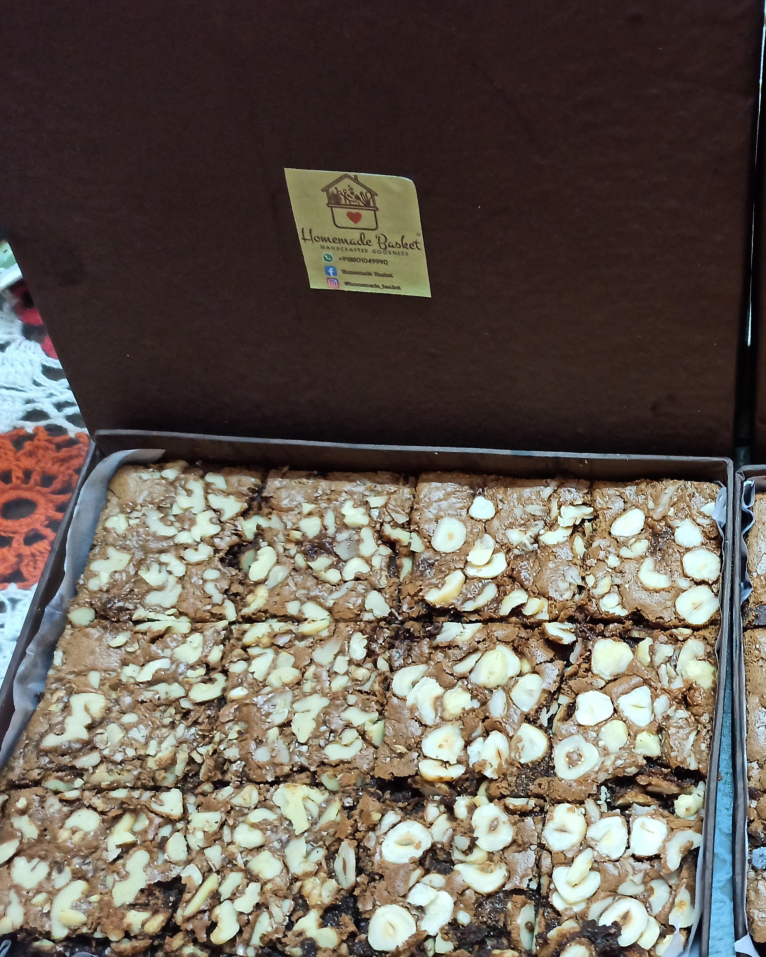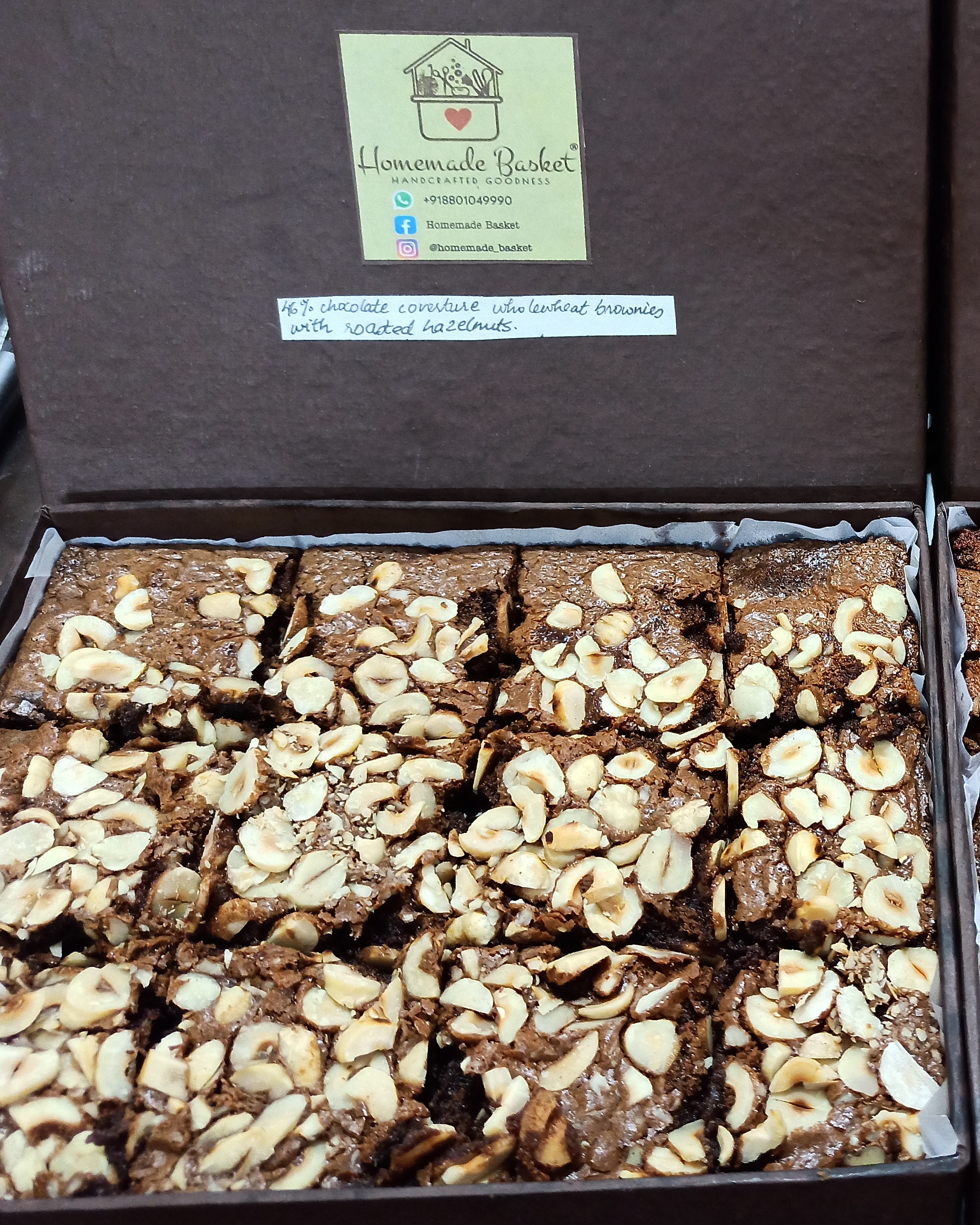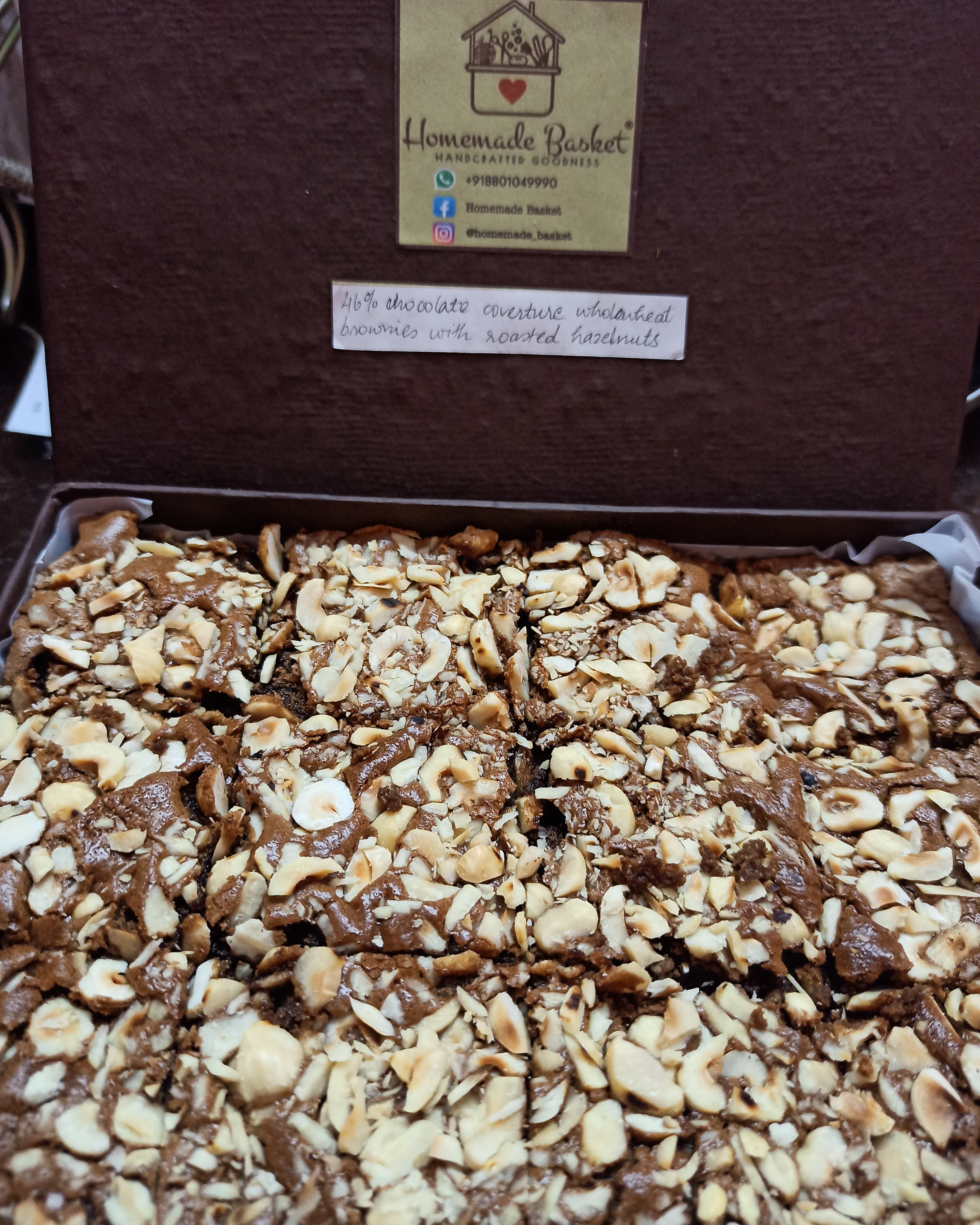 46% wholewheat brownies with jaggery as sweetner with roasted hazelnuts